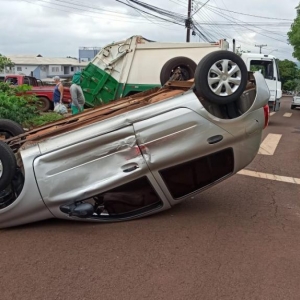 O motorista do caminhão avançou a preferencial e atingiu lateralmente o Clio que na sequência capotou ficando com as rodas para cima, o condutor do Renault foi socorrido por uma equipe do Corpo de Bombeiros com ferimentos considerados leves e encaminhado a UPA.
