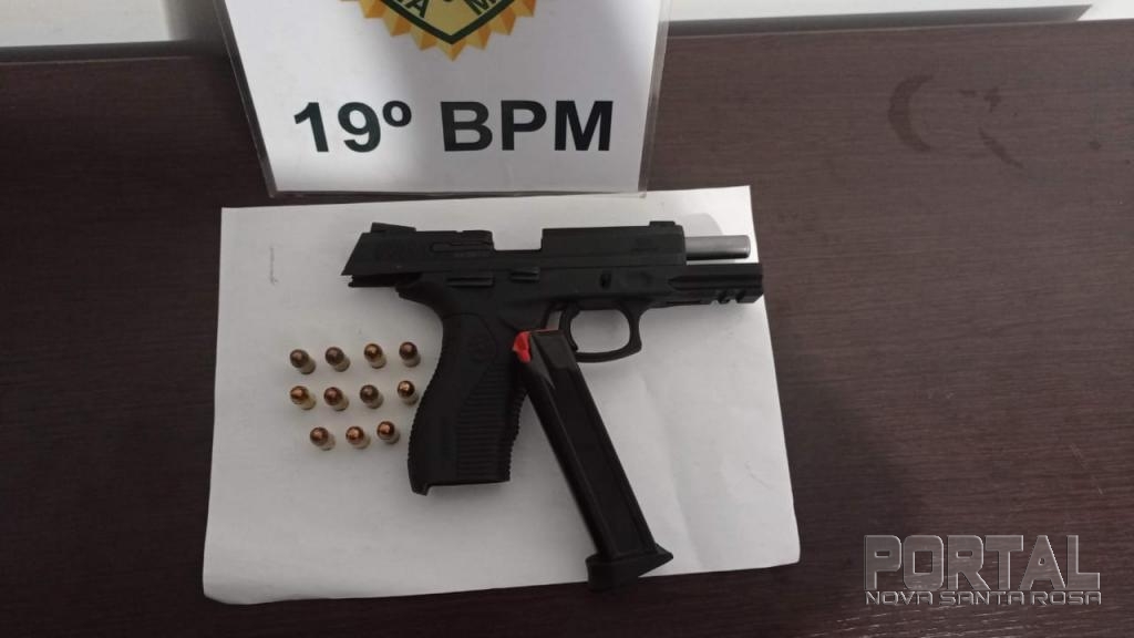 Durante revista ao veículo foi localizado uma pistola .380 838 marca Taurus, e o condutor do veículo relatou que a arma era sua e que possui registro.