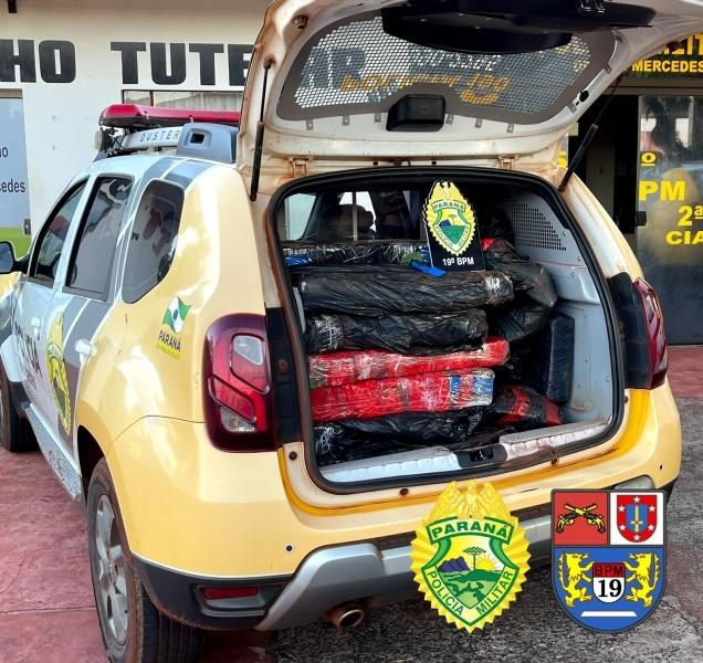 Conforme a PM, a equipe realizava patrulhamento no interior do distrito no final da tarde, quando avistou marcas de pneus que seguiam em direção ao Lago de Itaipu. Em diligências pelo local, os policiais encontraram uma grande quantidade de maconha escondida debaixo de uma lona, já em meio a mata.