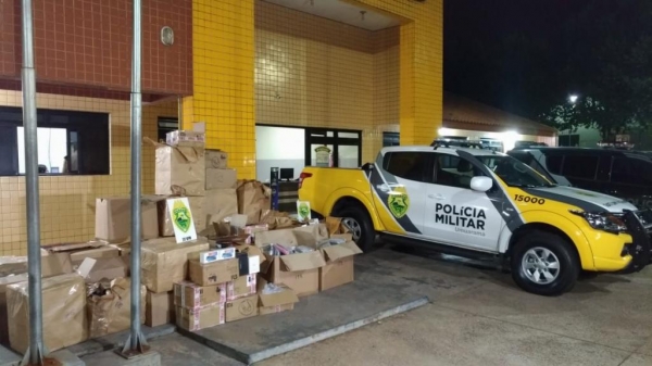 Equipes do 25º Batalhão de Polícia Militar (25º BPM) apreenderam diversos produtos contrabandeados em uma residência na Rua Dom Eugênio em Umuarama nesta quinta-feira (03).