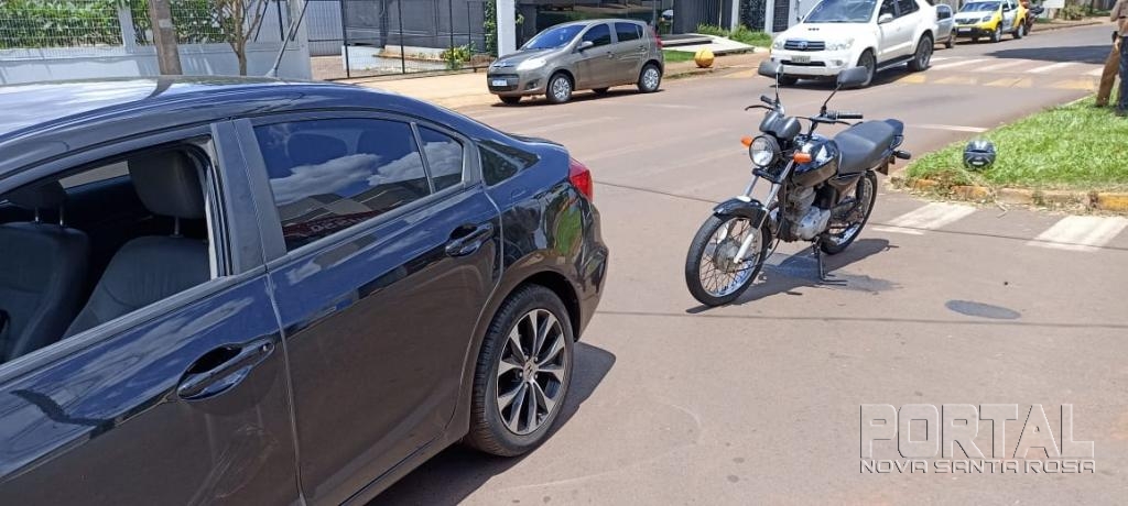 O Honda Civic placas Mercosul e a moto CG Titan 125 cilindradas placa de Marechal Cândido Rondon se envolveram em um acidente de trânsito na avenida Nossa Senhora de Fátima esquina com avenida Borges de Medeiros no Jardim Gisela em Toledo.