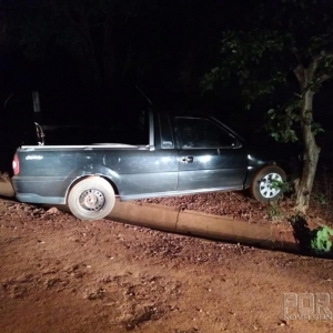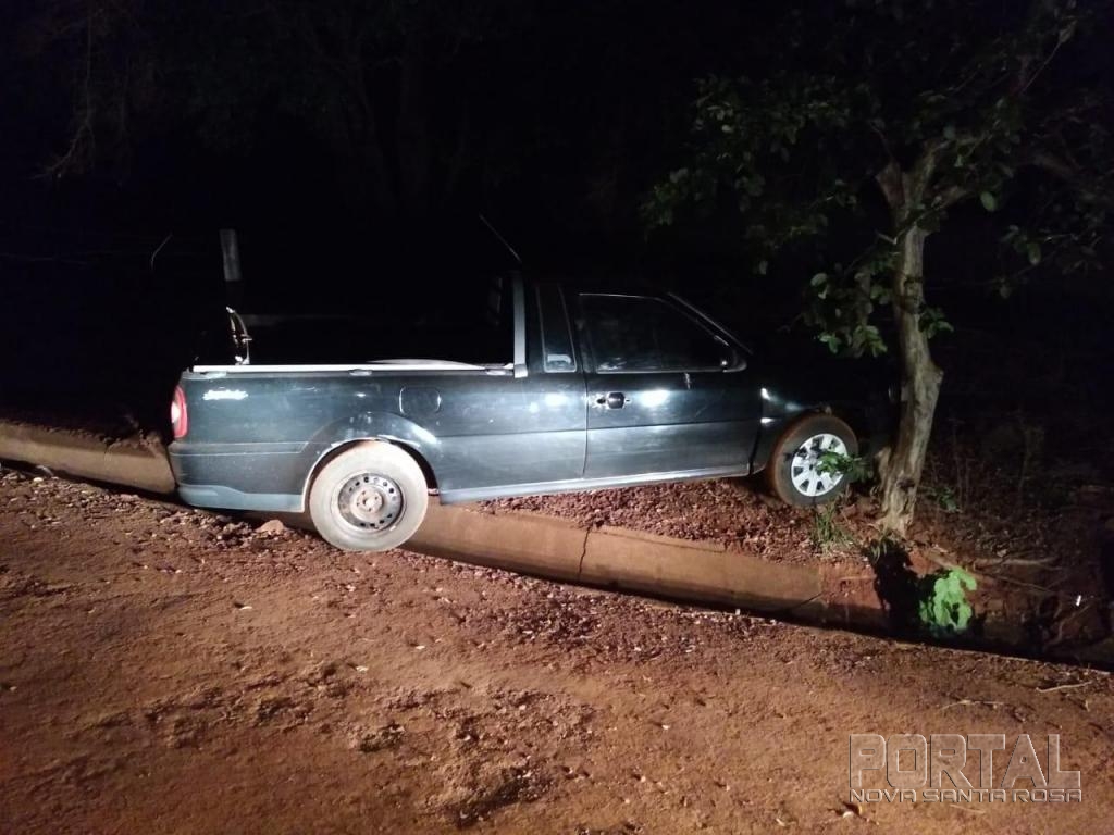 Ontem a noite, policiais militares de Assis Chateaubriand, durante patrulhamento pela rua Carlos de Abreu, avistaram um veículo, VW Saveiro, estacionado de forma irregular em um barranco, sendo que com a chegada da equipe, moradores da localidade informaram aos policiais que o veículo estava trafegando em alta velocidade com os faróis apagados e que no momento da aproximação da equipe policial, o condutor do veículo o estacionou e fugiu para um matagal próximo.