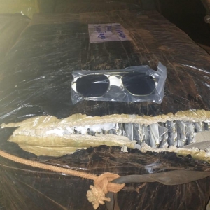 O Pálio foi encaminhado até o DPM de Dr. Oliveira Castro e verificando superficialmente os volumes constatamos que no veículo contem 12 (doze) volumes com relógios de origem paraguaia e 05 (cinco) volumes de óculos de sol, no total 17 volumes.