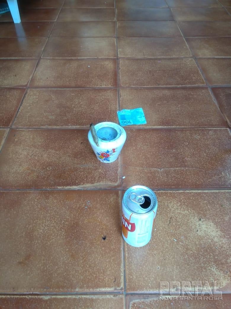 Realizada a abordagem, os dois foragidos foram algemados e após foram conduzidos ao pelotão de Policia Militar, a outra equipe retornou a residência e realizou buscas, onde foi encontrado um aparelho de celular da marca Xiaomi de cor preta, R$ 100,00 em dinheiro e uma porção de maconha pesando 30g (trinta gramas).