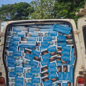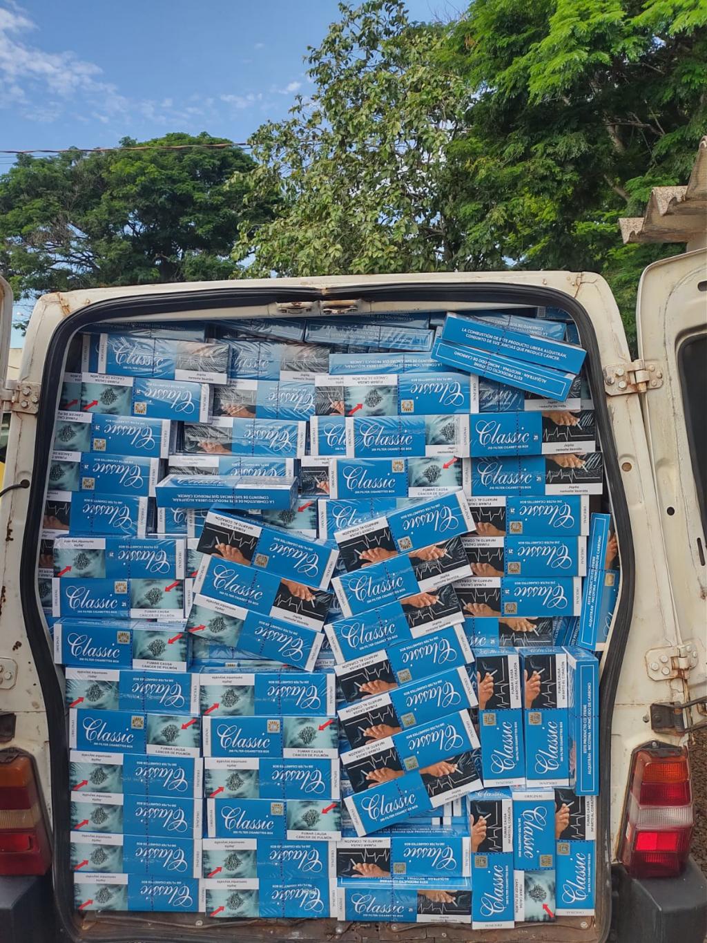 O Fiat estava abarrotado de cigarros de origem estrangeira, o condutor foi detido em flagrante, no veículo havia com cerca de 48 caixas de cigarro da marca Classic, segundo informações do condutor.