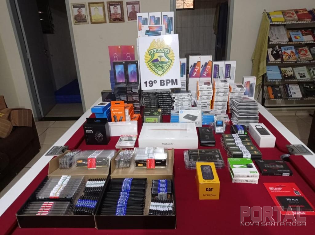Degundo a Polícia Militar, aproximadamente 600mil reais em eletrônicos foram apreendidos.