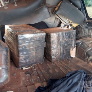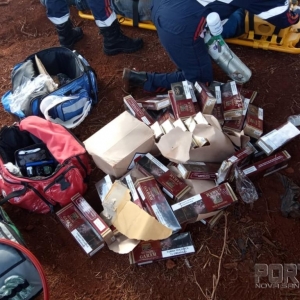 No carro haviam vários pacotes de cigarros oriundos do Paraguai.