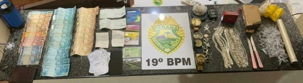 Foi localizado pela equipe da Polícia Militar, 490 gramas de maconha e 46 gramas de cocaina, balanças, embalagens, dinheiro e anotações de dívidas de usuários de drogas.