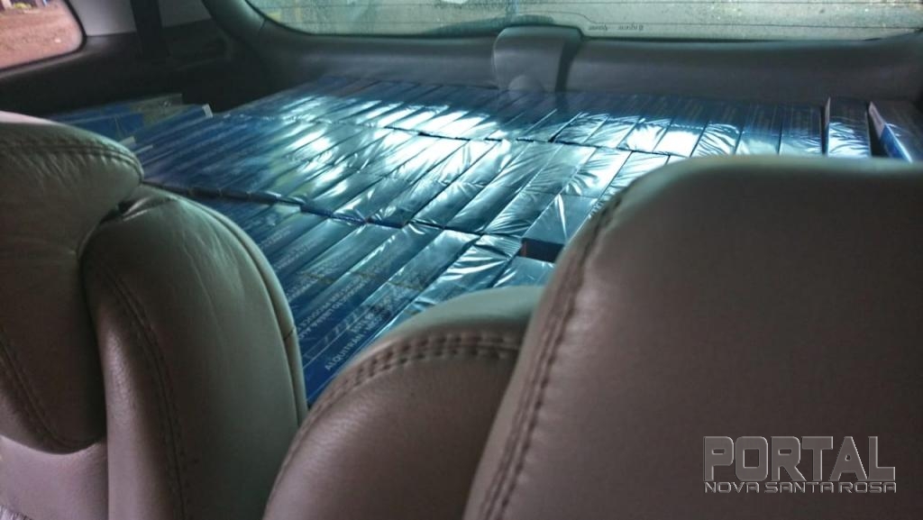 Dentro do veículo foi encontrado certa quantidade de pacotes de cigarros carregado até próximo à altura dos vidros, e sem notas de procedência.