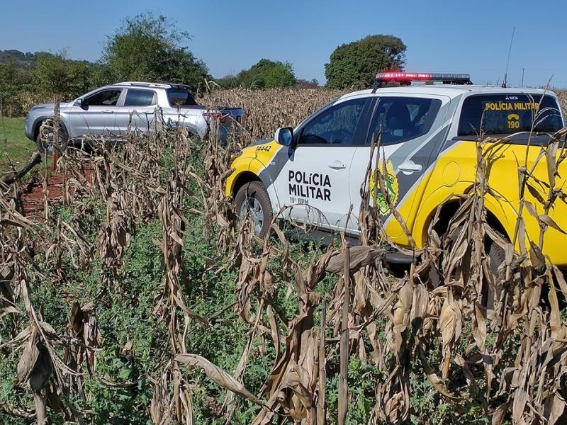 O condutor adentrou em meio a uma plantação de milho, onde abandonou o veículo