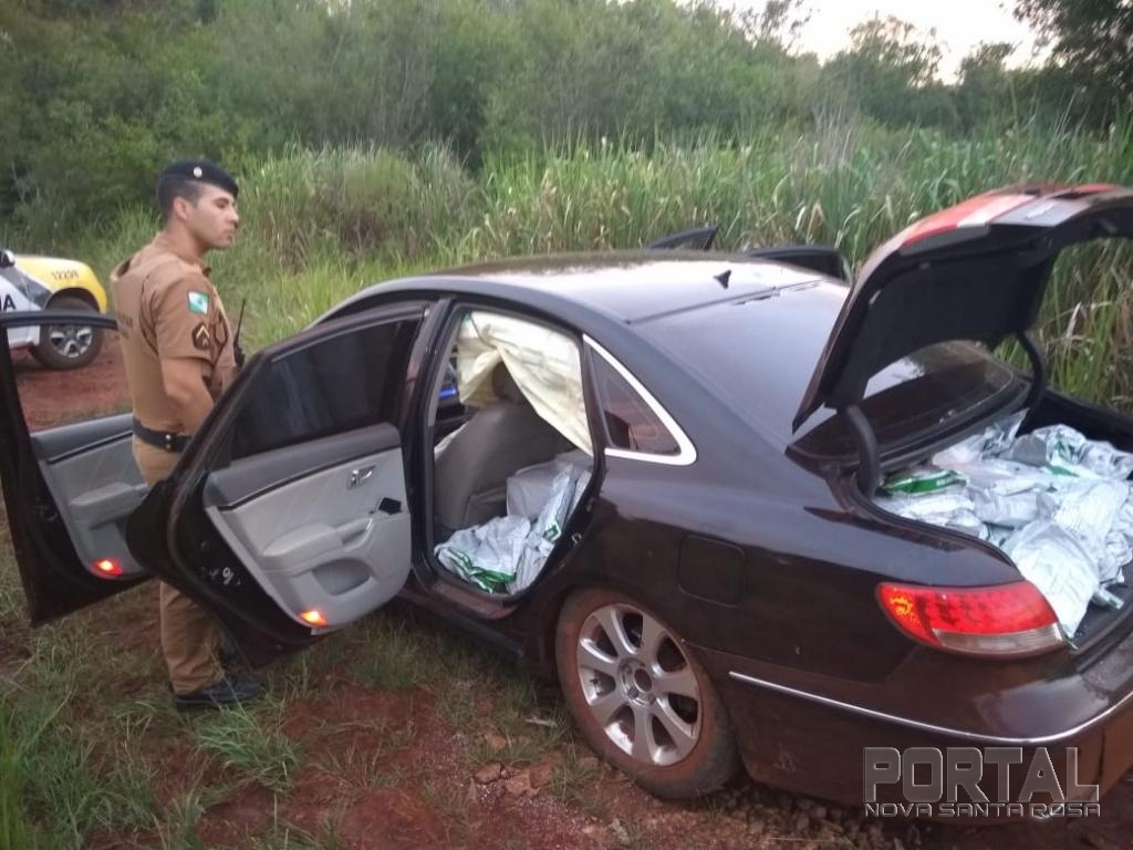 Ao verificar o interior do veículo foram encontradas diversas embalagens de venenos contrabandeados do Paraguai.