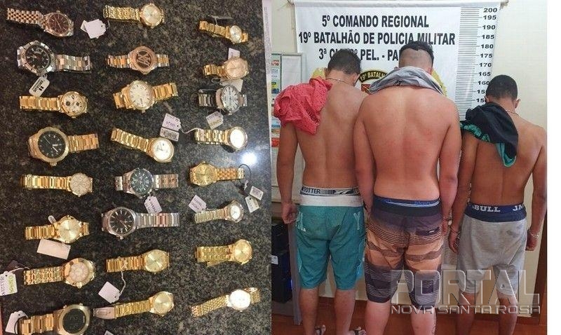 Após a divulgação das imagens de um furto ocorrido em uma relojoaria da cidade, diversas denúncias anônimas auxiliaram os policias militares a chegarem nos autores do crime.