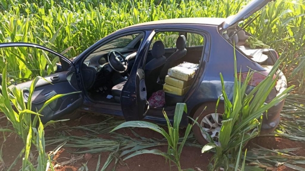 No local a equipe se deparou com o veículo, dentro do milharal há uns 10 metros da rodovia, dentro do veículo a equipe visualizou vários tabletes de maconha. Populares no local informaram que o motorista teria saído do veículo e fugiu, a equipe ROTAM logo após chegou em apoio e fez buscas nos arredores para tentar achar o motorista do veículo. Foi acionado o guincho da PM para levar o carro e substancias apreendidas até a 20ª SDP de Toledo.