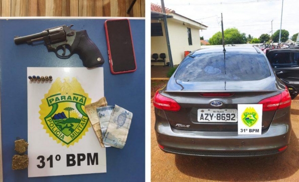 Foi encontrado no interior do carro uma arma revolver .38 com numeração incompatível, seis munições intactas, uma quantidade de maconha, uma bucha de cocaína, R$ 74,00 em diversas notas trocadas, uma carteira contendo os documentos pessoais com a quantia de R$ 760,00, além de alimentos, doces, roupas e brinquedos de criança e dois pedaços de corda.