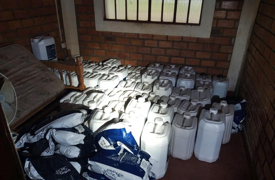 Enquanto os policiais procuravam por pessoas na parte externa, foi possível verificar por uma fresta na janela de um dos quartos, várias embalagens de agrotóxicos.
