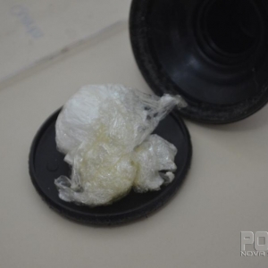 Questionado ser produto de ilícito a mesma em primeiro momento disse que não. posteriormente confirmou que ela faz venda de cocaína, mas que teria vendido tudo. que continuando as buscas foi localizado dentro da tampa de uma garrafa térmica um invólucro com substancia análoga a cocaína, pensando 9,7 gramas.