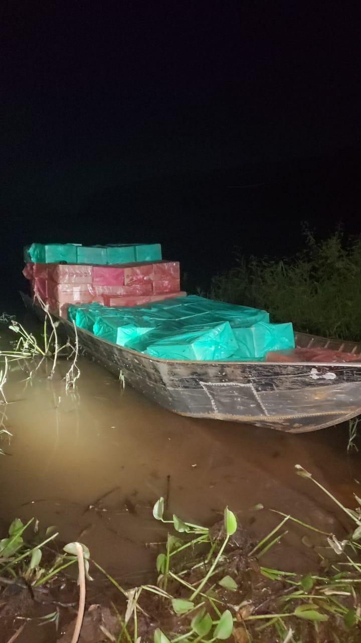 Ao se aproximarem para efetuar a abordagem, constatou-se que várias pessoas estavam fazendo o transbordo de cigarros oriundos do Paraguai.