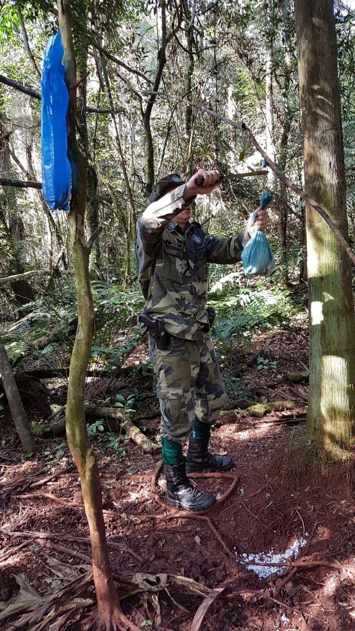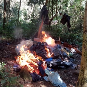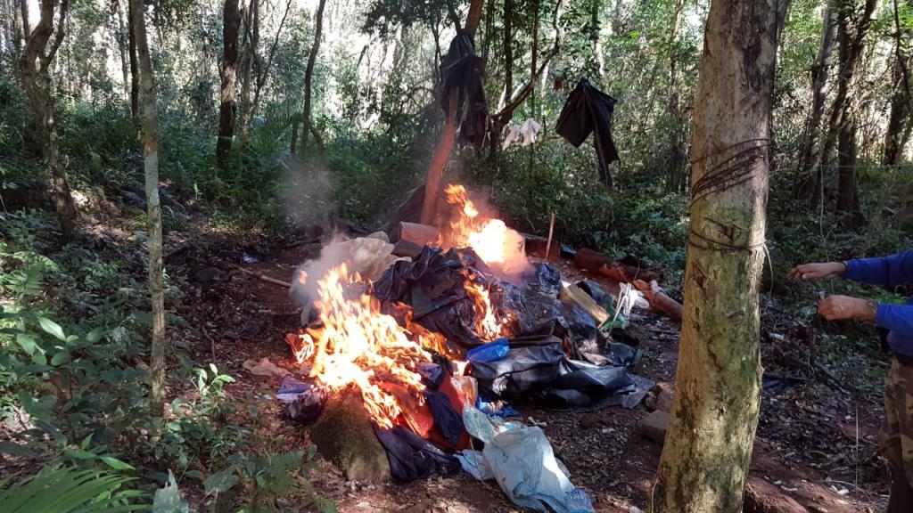 Nesta quinta-feira (20), policiais militares lotados na 5ª Companhia de Polícia Ambiental, localizaram um acampamento de caçadores, no interior no Parque Nacional do Iguaçu, no Município de Capitão Leônidas Marquês.