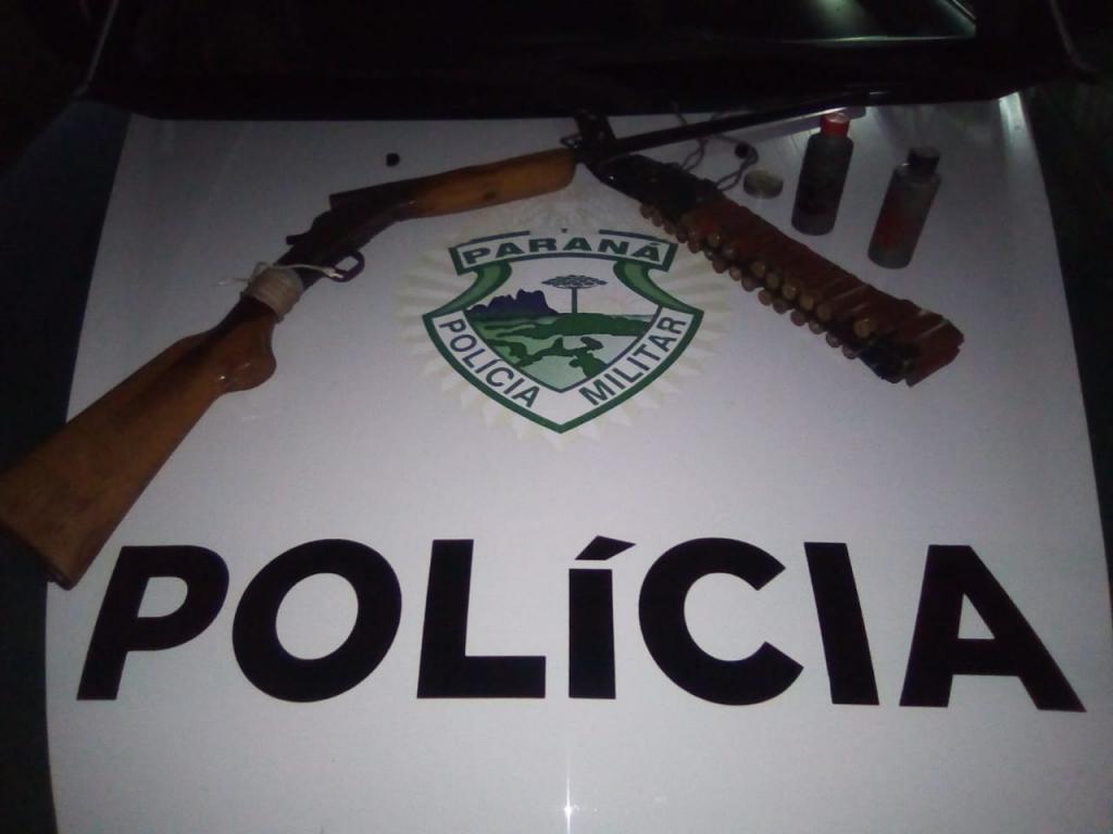 No local foram apreendidos 01 (uma) espingarda cal. 32, 15 (quinze) cartuchos intactos cal. 32, 10 (dez) cartuchos cal. 32 deflagrados e, 01 (uma) bolsa contendo chumbo e espoletas.