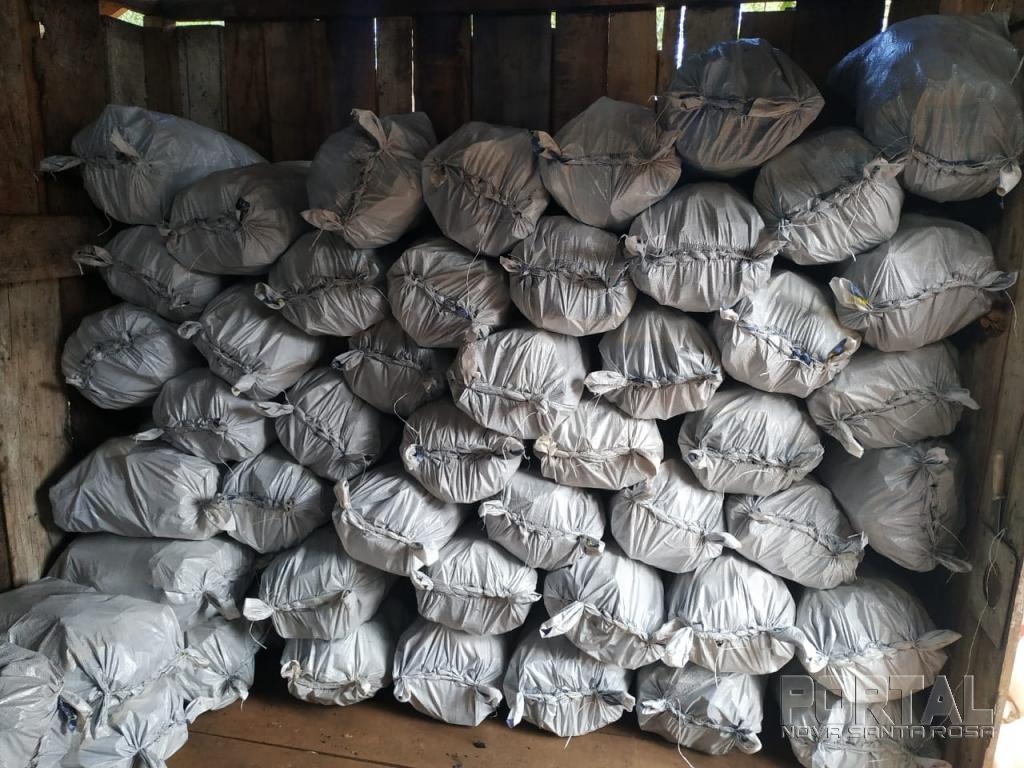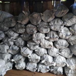 Das 50 (cinquenta) sacas fechadas de carvão encontradas no depósito da propriedade ao lado, 20 sacas o proprietário desta área assumiu ser dele.