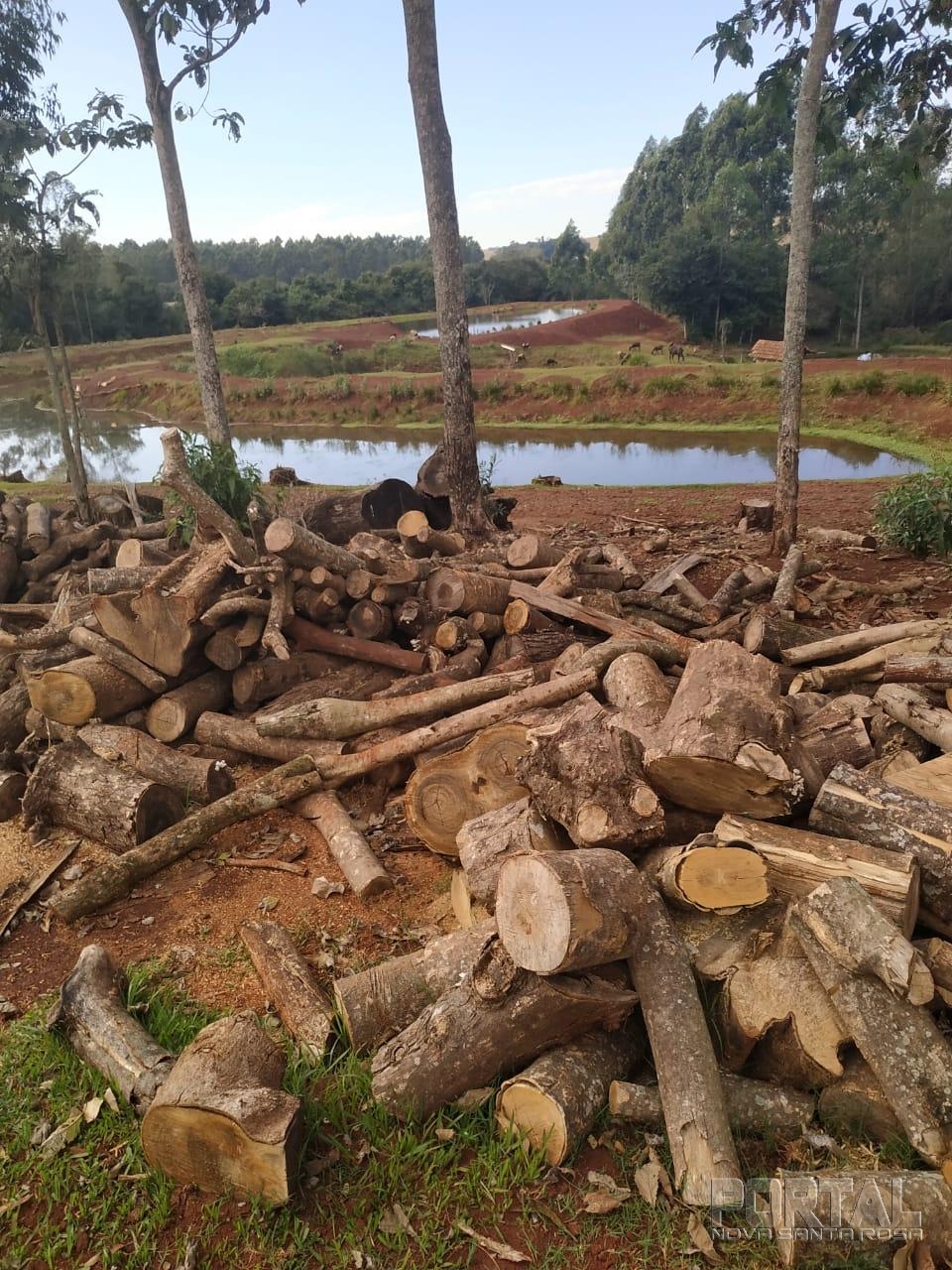 Após diligências, os militares estaduais encontraram na propriedade vizinha mais 03 (três) fornos inativos e 30 metros de lenhas estéreis de espécies exóticas como manga, jamelão, cajueiro-japonês e canafístula, sem licença ambiental.