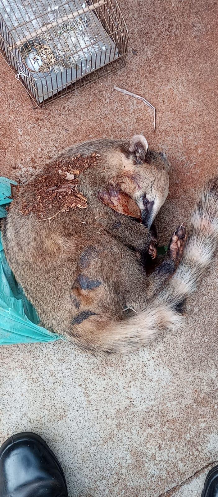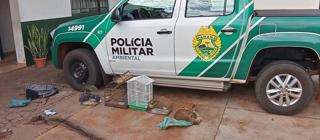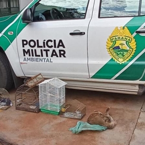 Outra ação no domingo (03), ocorreu após denúncia anônima, policiais ambientais abordaram um indivíduo na Avenida das Cataratas, em Foz do Iguaçu, e encontraram na garupa da sua bicicleta um quati morto, uma gaiola com 1 (uma) ave silvestre (trinca-ferro) e redes de captura de pássaros.