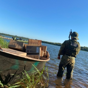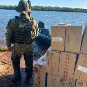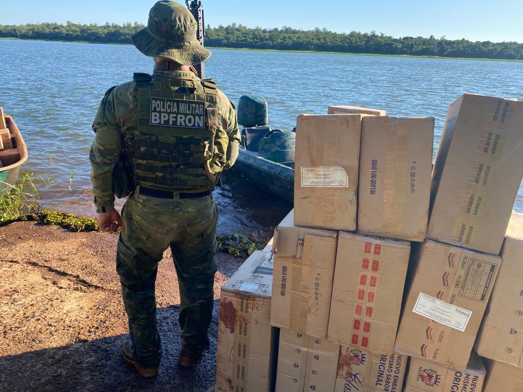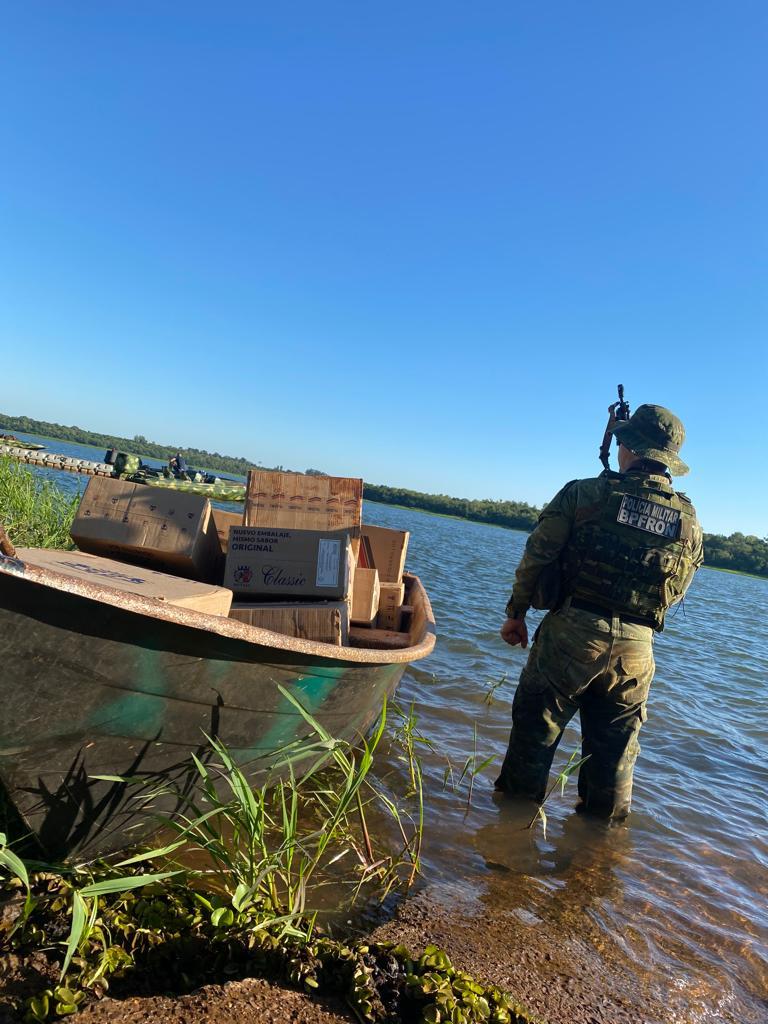 Na sexta-feira (11) policiais militares do Pelotão C.O.B.R.A. do BPFron realizavam patrulhamento embarcado no lago de Itaipu em Pato Bragado quando avistaram uma embarcação no lago, carregada com cigarros contrabandeados.