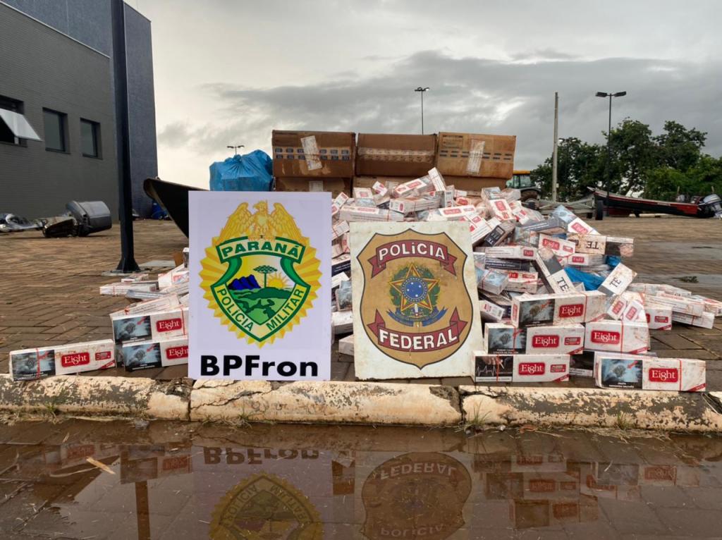 Na fuga parte da carga foi perdida, sendo arrecadadas cerca de 30 (trinta) caixas de cigarro paraguaio.