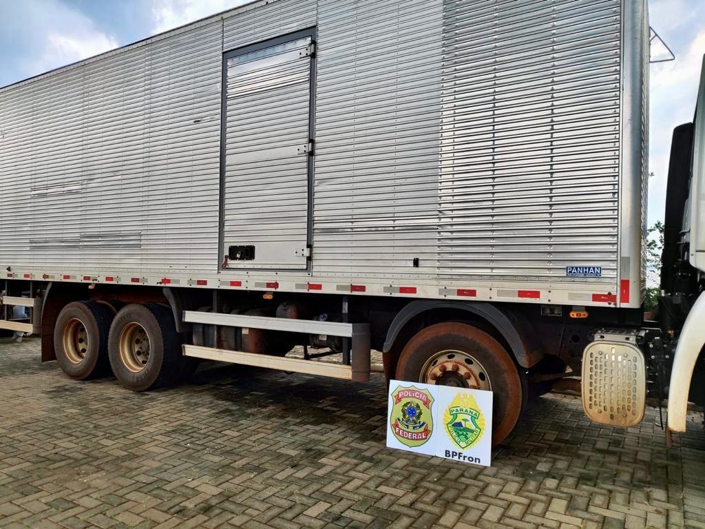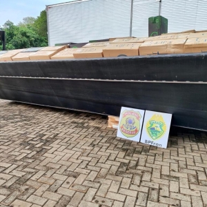 No interior do caminhão e da embarcação, foram encontrados cerca de 20.000 pacotes de cigarros contrabandeados do Paraguai.