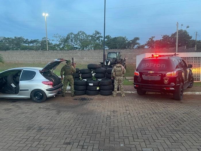 Os moradores foram qualificados e o veículo, pneus e demais ilícitos foram encaminhados para a Delegacia de Polícia Federal de Guaíra para os procedimentos de polícia judiciária.