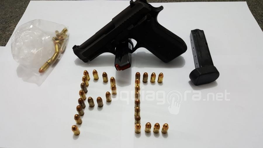 Os policiais realizaram buscas em uma residência no Bairro São Francisco, onde foi encontrada uma arma de fogo com numeração suprimida sendo lavrado auto de prisão em flagrante por porte de uma arma ilegal.