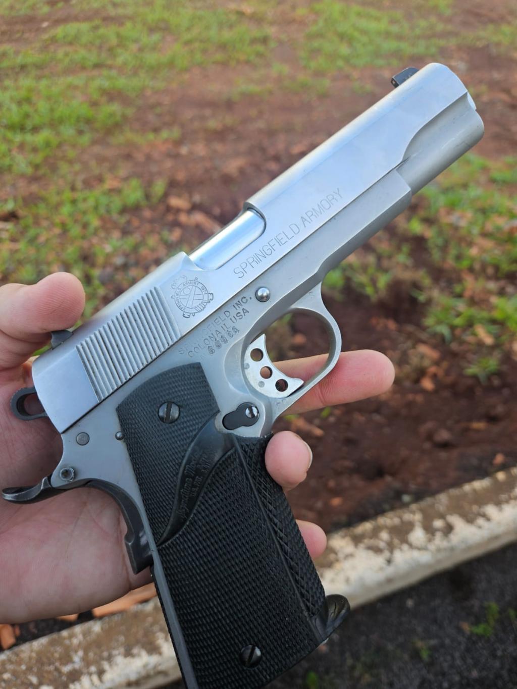 – Uma pistola calibre .45 Springfield com numeração suprimida;