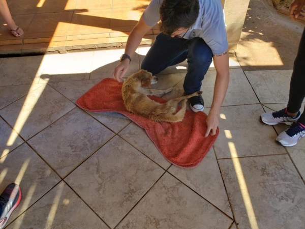 O cachorro foi levado para atendimento veterinário em estado grave, com o apoio de equipe da Secretaria Municipal do Meio Ambiente de Toledo.