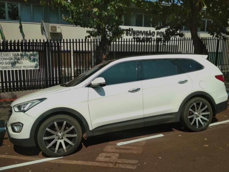 A Polícia Civil (PCPR) de Toledo na tarde de ontem (27) localizou um veículo Hyundai Santa Fé, cor branca, placas FUA 1165, objeto de crime de roubo ocorrido no dia 25/05/2019, próximo ao município de Cruzeiro do Oeste.