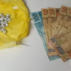 No local os policiais apreenderam 31 pedras de "Crack" e R$ 400,00 em dinheiro, onde uma mulher de 25 anos de idade, responsável pela residência, foi autuada em flagrante pelo crime de tráfico de drogas.