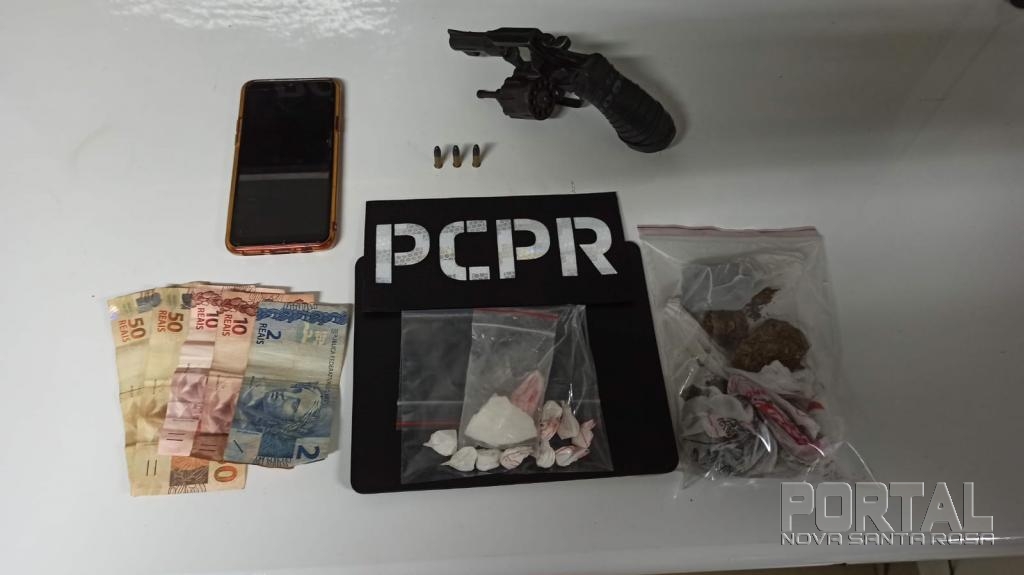 Policiais Civis da 20a Subdivisão Policial de Toledo em diligências pela manhã de hoje (03), na Rua Werner Zielasko, Jardim das Orquídeas, durante investigações que visam o combate ao Tráfico de Drogas naquela região, realizaram a apreensão de 64g de "Maconha", 19g de "Cocaína", alem de uma arma de fogo do tipo revólver, calibre .22, com 3 munições intactas.