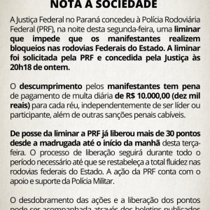 PRF (Polícia Rodoviária Federal), Polícia Militar e BPFron (Batalhão de Polícia da Fronteira) começaram a desbloquear as estradas no oeste do Paraná.