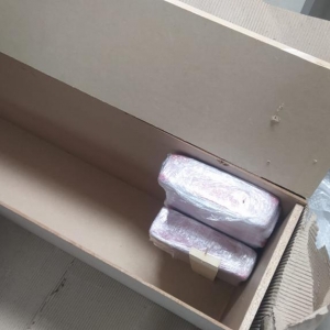 A droga foi encontrada em meio a uma caixa de papelão para o transporte de móveis novos. Junto com as peças dos móveis, foram encontrados 96 tabletes de maconha, que após pesados, totalizaram 102 kg da droga.