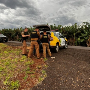 Na sequência, a equipe da patrulha comercial obteve êxito em localizar o terceiro indivíduo, trafegando em uma estrada rural a cerca de 2km do local da primeira prisão. Ele foi identificado, e estava com a chave do Corolla das vítimas no bolso, além de um capuz preto, bem como três munições de calibre 38.