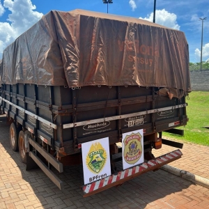 Na quinta-feira (12), policiais militares do BPFRON - Batalhão de Polícia de Fronteira em ação integrada com a Polícia Federal, realizavam patrulhamento em Palotina, durante Operação Hórus, quando avistaram um caminhão abandonado carregado com cerca de 20.000 pacotes de cigarros e 10 pneus contrabandeados.