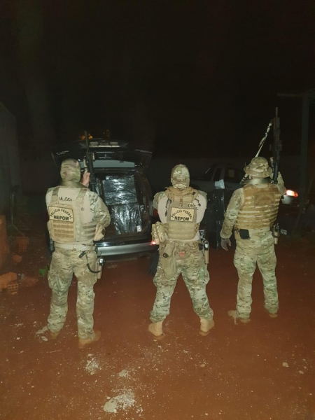 No local foi apreendido um Hyundai Vera Cruz, um Fiat Strada e aproximadamente 2.000kg de defensivos agrícola de origem estrangeira, acarretando num prejuízo aproximado de R$ 2.000.000,00 (dois milhões de reais) ao crime organizado da região.
