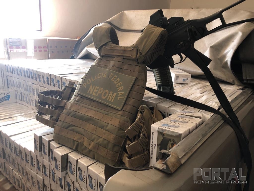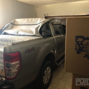 No local foram apreendidos 01 veículo Ranger com registro de furto/roubo, preparado para transporte de ilícitos e aproximadamente 100 caixas de cigarros contrabandeados do Paraguai, um prejuízo de aproximadamente R$300.000,00 à quadrilha criminosa.
