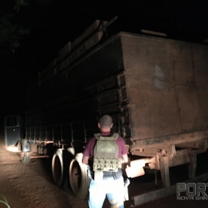 Policiais Federais visualizaram um caminhão em atitude suspeita. Foi realizada a abordagem, entretanto o motorista conseguiu fugir pela mata, não sendo localizado.