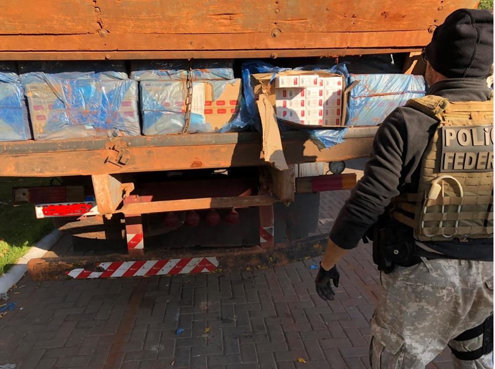 Efetuada a abordagem, o motorista foi preso em flagrante conduzindo o caminhão carregado com aproximadamente 450 caixas de cigarros paraguaios, representando um prejuízo de aproximadamente R$ 1.250.000,00 (um milhão e quinhentos mil reais) aos criminosos da região.