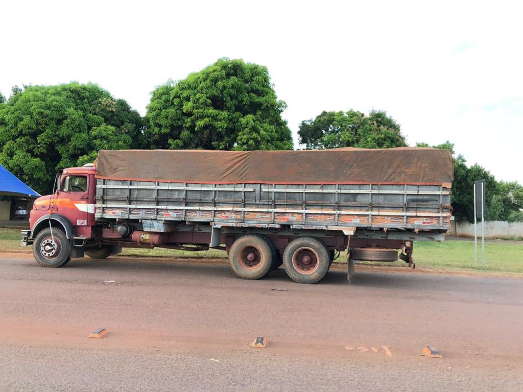 Durante patrulhamento na zona rural de Terra Roxa, policiais visualizaram movimentação suspeita de um caminhão Mercedes 1513 e resolveram realizar aproximação para melhor fiscalização.