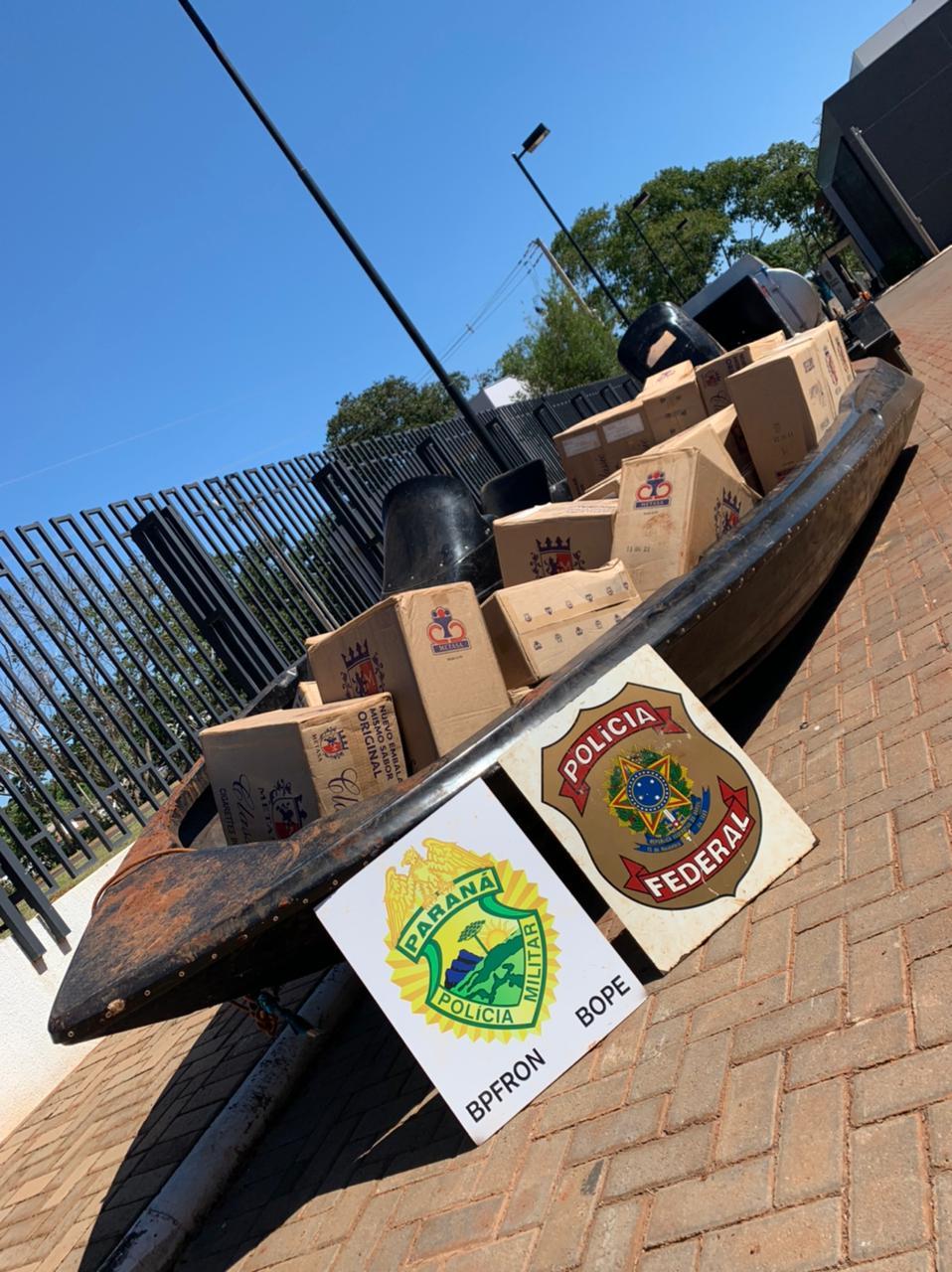 A ação integrada entre POLÍCIA FEDERAL, BPFRON e BOPE da PMPR resultou na apreensão de uma embarcação de fibra equipada com motor Mercury carregada com aproximadamente 30.000 carteiras de cigarros contrabandeados, acarretando um prejuízo total estimado de R$ 200.000,00 (duzentos mil reais) ao crime organizado.
