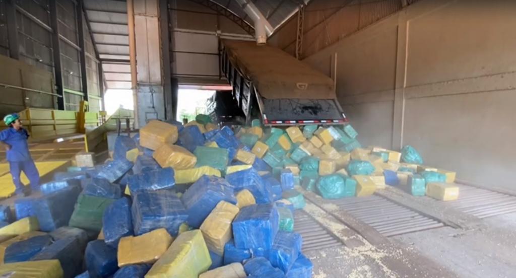 Segundo o que informou a Polícia Federal as 15h39 da tarde de hoje é que a estimativa é de que 30 toneladas, ou seja, 30 mil quilos de maconha estavam em meio a carga de soja.