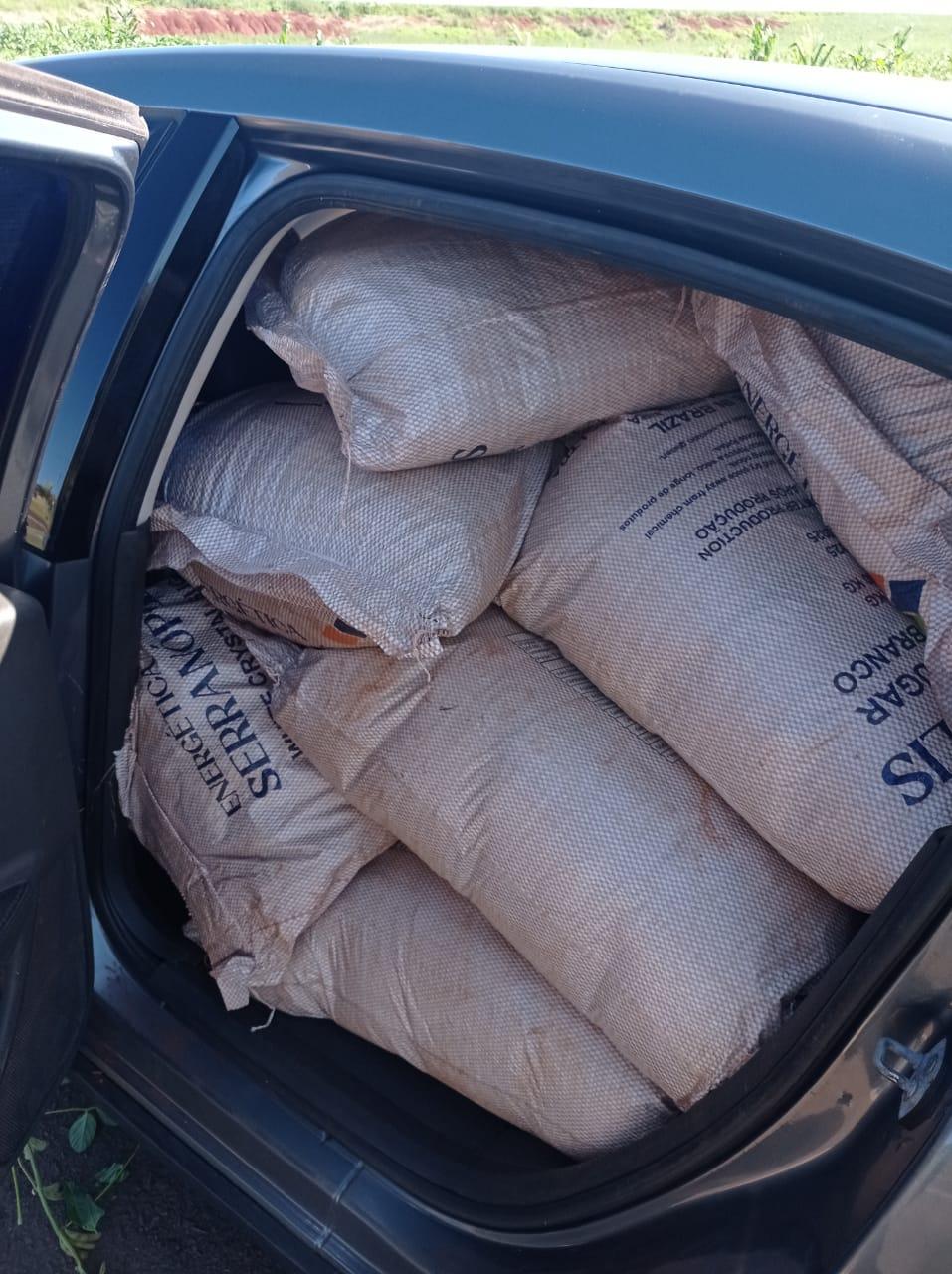 Após acompanhamento tático, o veículo foi interceptado, mas dois ocupantes abandonaram o automóvel e fugiram para uma área de mata fechada, não sendo localizados.
