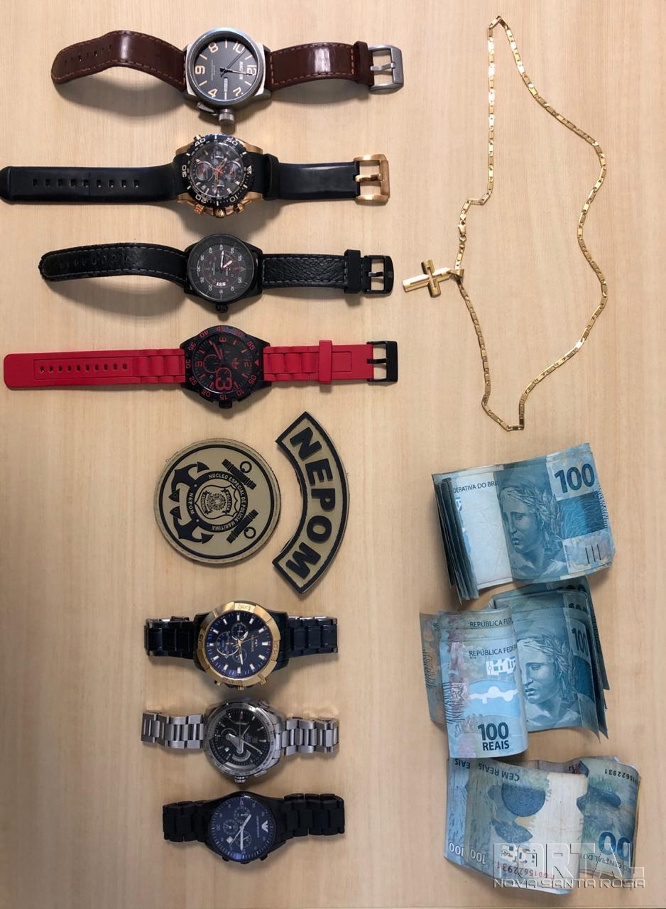 Também foram apreendidos valores, relógios e uma corrente. Caso alguém consiga identificar algum desses produtos, podem procurar a Polícia Federal de Guaíra, com documentos que comprovem a propriedade (cópia do Boletim de Ocorrência, fotos, nota fiscal, etc.)