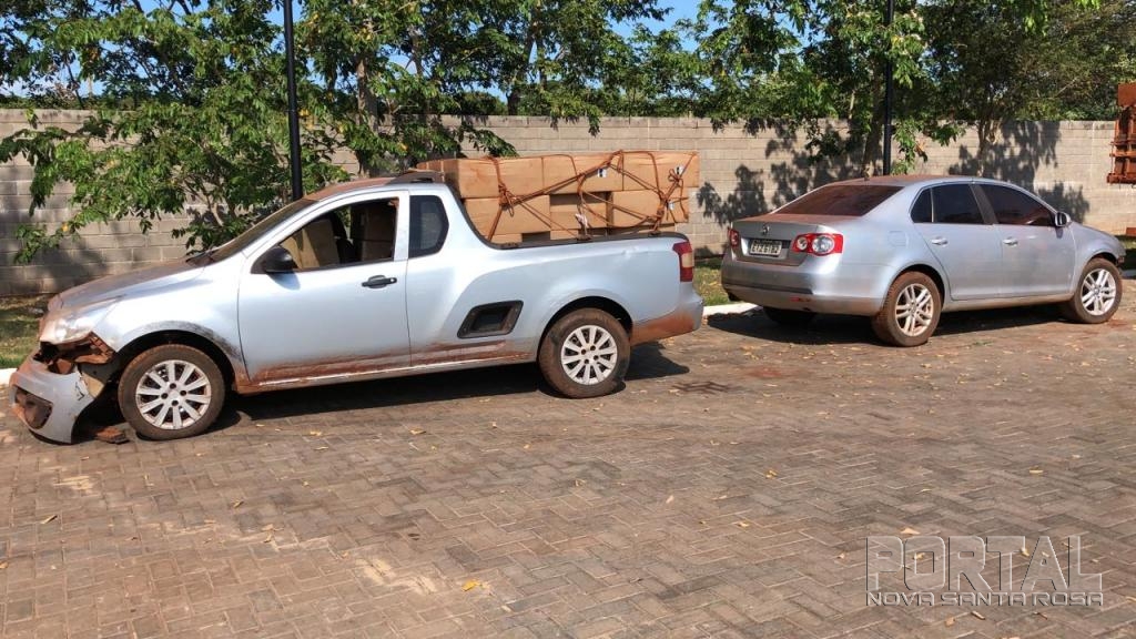 Na tentativa de abordagem, os criminosos, que naquele instante faziam o carregamento das cargas dos caminhões para diversos veículos menores (velozes), iniciaram grande correria generalizada em diversas direções. A equipe policial iniciou acompanhamento tático e logrou êxito em realizar apreensão de 01 CAMINHÃO BAÚ VW 24.250 Constalation, 01 VW JETTA e 01 PICK-UP GM MONTANA carregados com um total aproximado de 800 caixas de cigarros paraguaios, representando um prejuízo de aproximadamente R$ 2.000.000,00 (dois milhões de reais) aos criminosos da região.